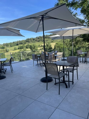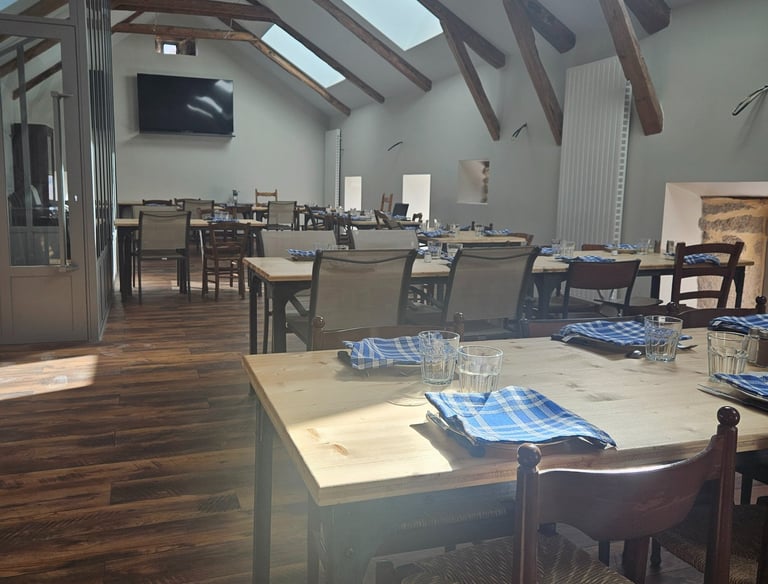 En hiver, quoi de mieux qu’un bon repas près de la cheminée ? Et quand les beaux jours arrivent, notre terrasse ombragée vous attend pour profiter du grand air. Que ce soit pour un déjeuner en famille, un dîner entre amis, un événement particulier ou un midi à thème, notre grande salle est là pour vous rassembler.